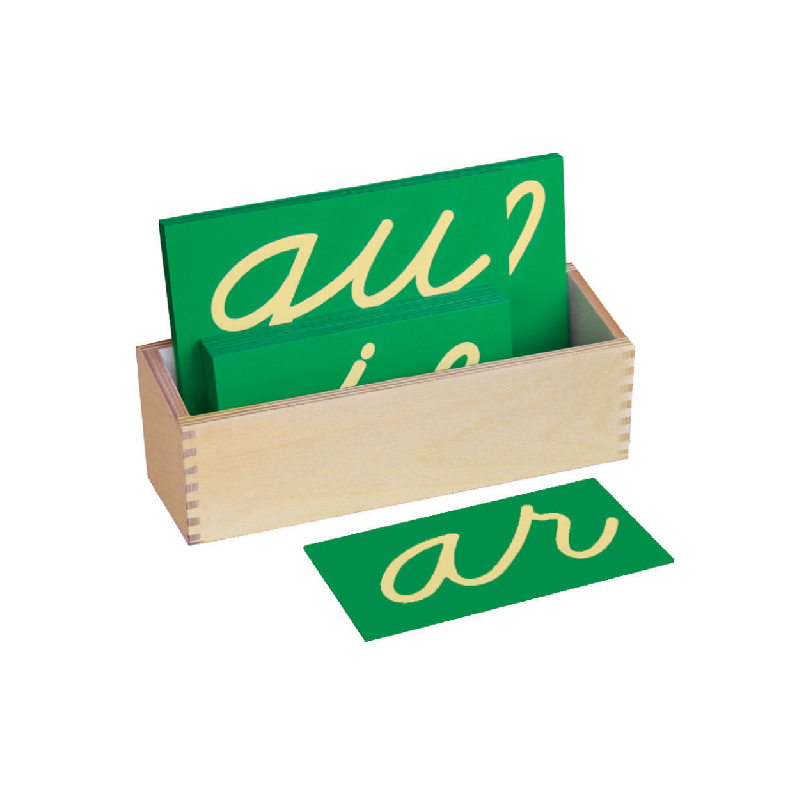 This set includes 16 double letter combinations. The letters are mounted on wooden Green boards, with each letter in lower case. Box included.