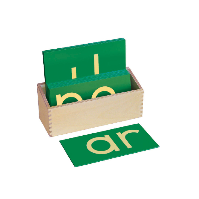 This set includes 16 double letter combinations. The letters are mounted on wooden Green boards, with each letter in lower case. Box included.